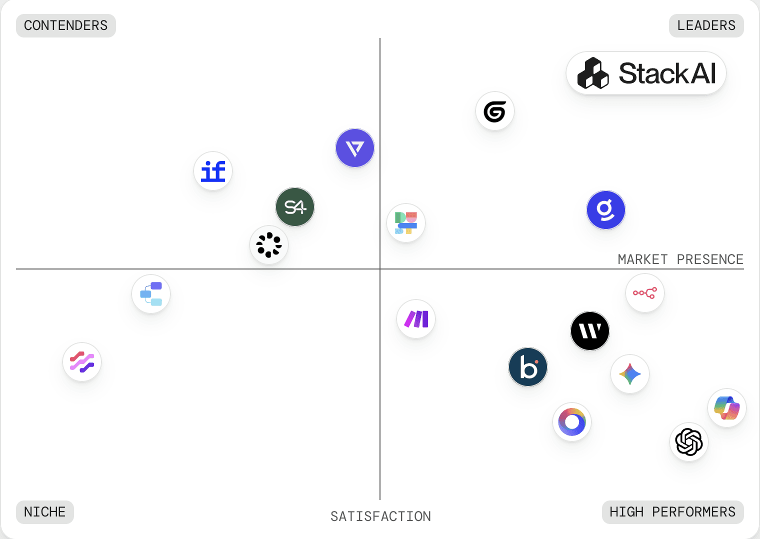 As the market shifts from experimentation to execution, StackAI leads with governed workflows, RAG, and an expansive suite of integrations.
